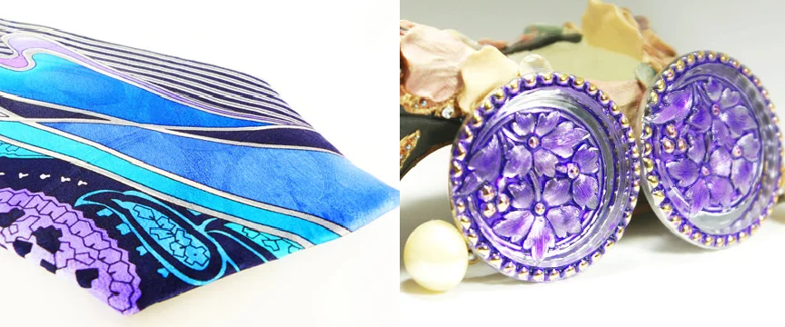 Cufflinks by Woman's Renaissance "Purple Pearls" Hawaiian inspired silk tie & a custom made soft suede purple leather MagTAK "Chick Magnet".