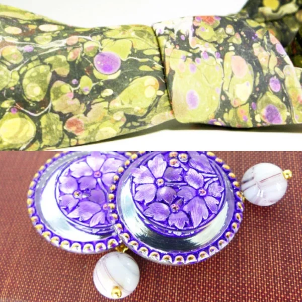 Featuring a pair of of our handcrafted lacy pearl cufflinks created just for women paired up with a vintage Asian inspired silk tie.